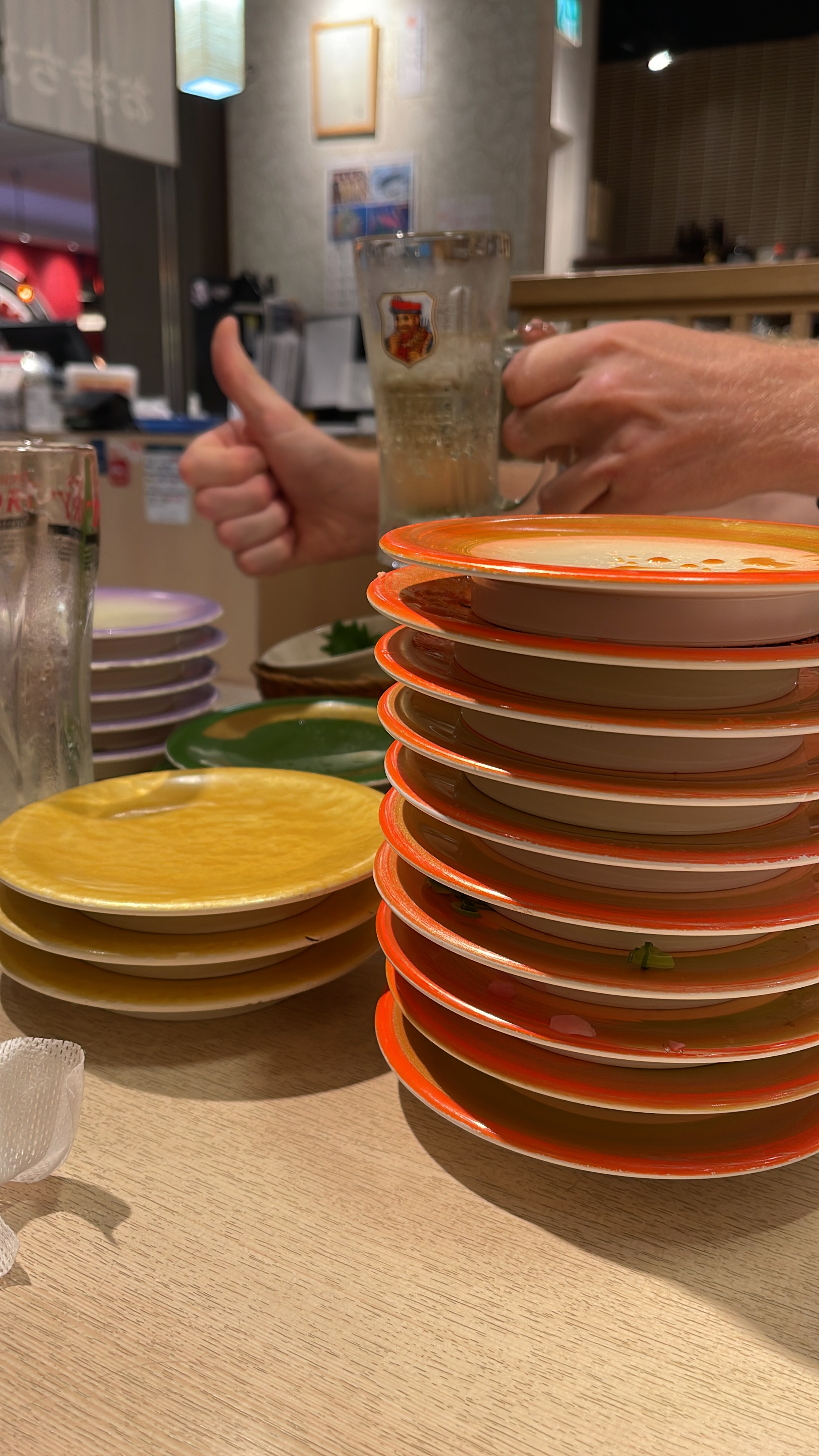 Having just arrived, starving, annoyed and tired, we went to the first sushi joint we could find (first timers in Japan and with only a few days, we wound’t settle for less). We ended up at this little place inside the Yodobashi tower, called Nipponichi Kaitenzushi. We had a pretty good time there, the sushi was really good and for a fair price. The restaurant served the food in those iconic “sushi treadmills” , it was interesting to see the food going around and you just pick what you feel like eating, amazing when you’re hungry since you don’t have to wait to order. It was the ultimate fast-food experience.